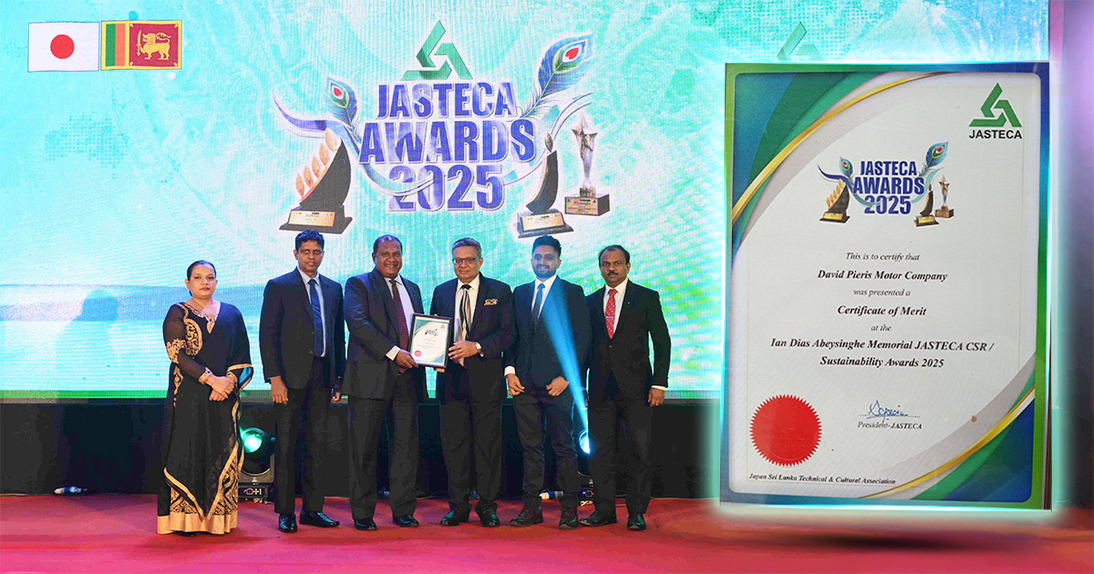 We are proud to announce that David Pieris Motor Company (Private) Limited (DPMC) has been recognized with the Merit Award of the “Ian Dias Abeysinghe Memorial JASTECA CSR / Sustainability Award” at this year’s ceremony.